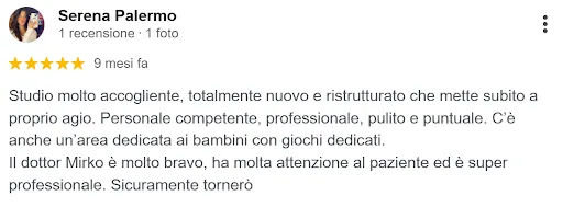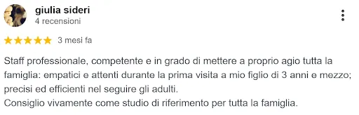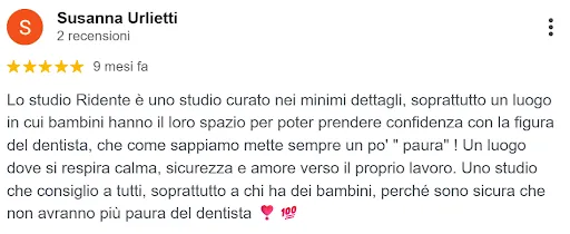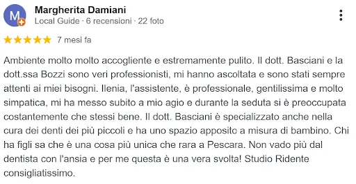 “Consiglio lo studio Ridente a chi cerca qualità, serietà e un approccio umano alla cura dentale soprattutto per i bambini”