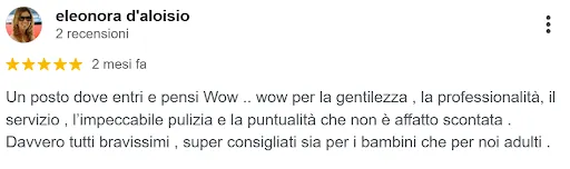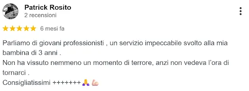 “... un servizio impeccabile svolto alla mia bambina di 3 anni. Non ha avuto nemmeno un momento di rettore, anzi, non vedeva l’ora di tornarci”