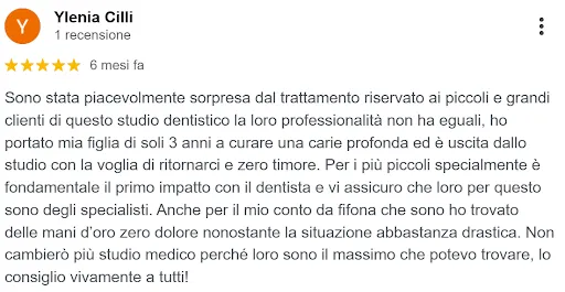 “... ho portato mia figlia di soli 3 anni a curare una carie profonda ed è uscita dallo studio con la voglia di ritornarci e zero timore”